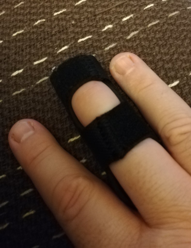 My injured finger is giving me lots of trouble. The main problem was that with the extra hand washing I had to re-dress the temporary splint several times per day.