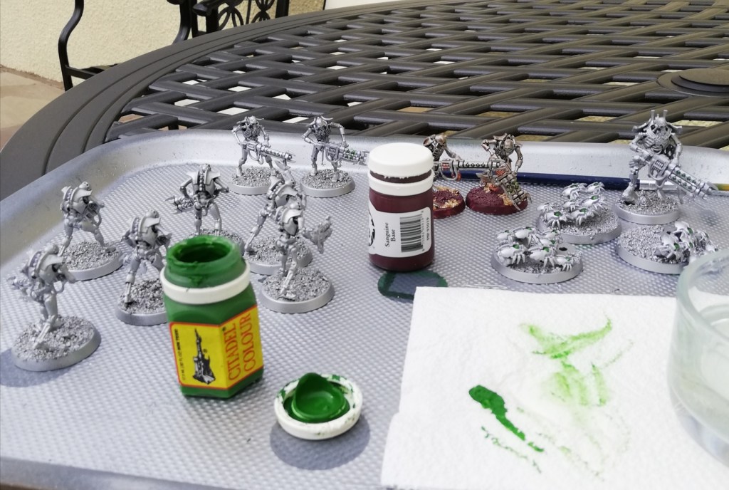 It was such a lovely day that I sat in the sun trap and painted Necrons for the Warhammer 40K game. I hope to use them tomorrow in a game with my son.